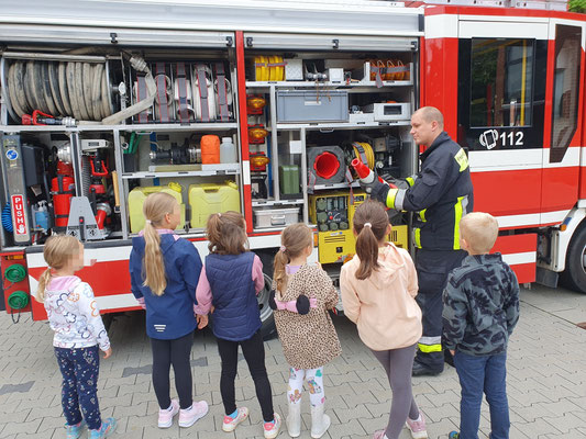 Heute haben die Vorschulkinder die Erntedankwägen in die Kirche gefahren. Vor Ort hat Pfarrerin Frau Mages einen kleinen Erntedank Gottesdienst für die Kinder gestaltet.
